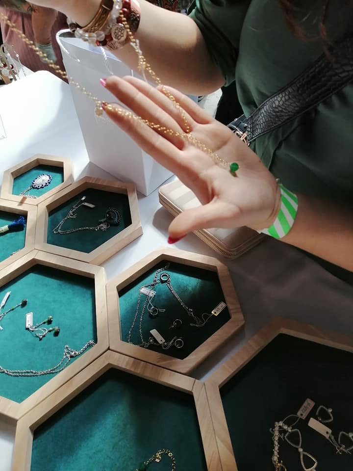 Materiał: stal chirurgiczna, kamień naturalny (agat zielony).