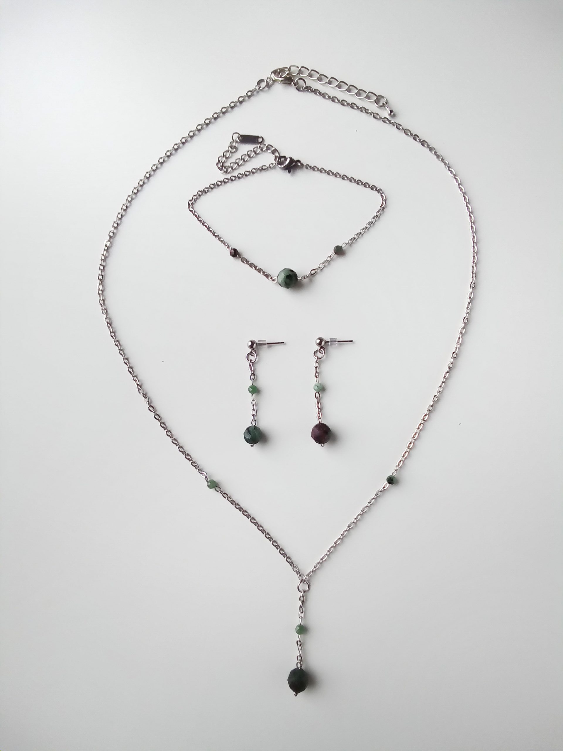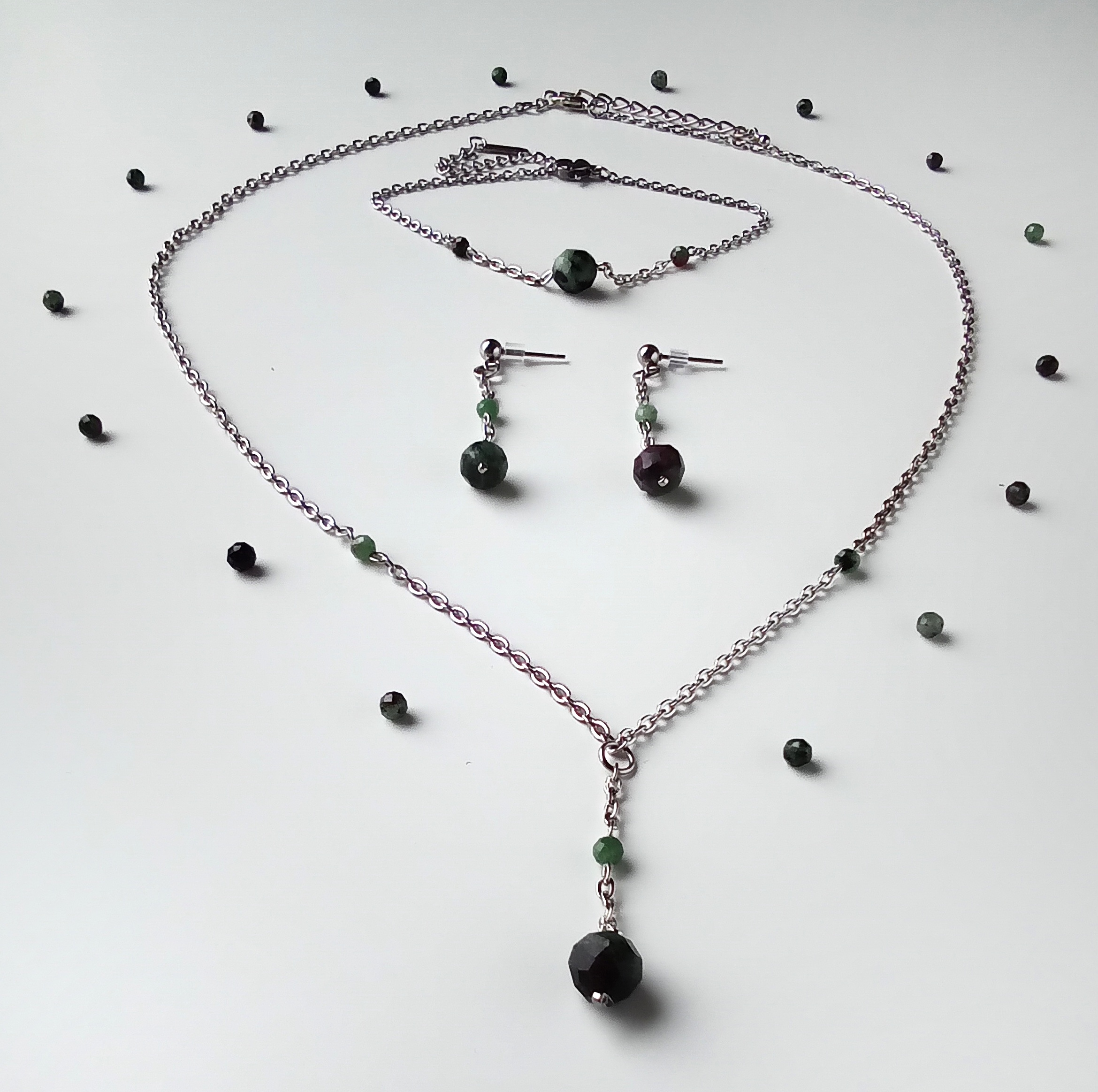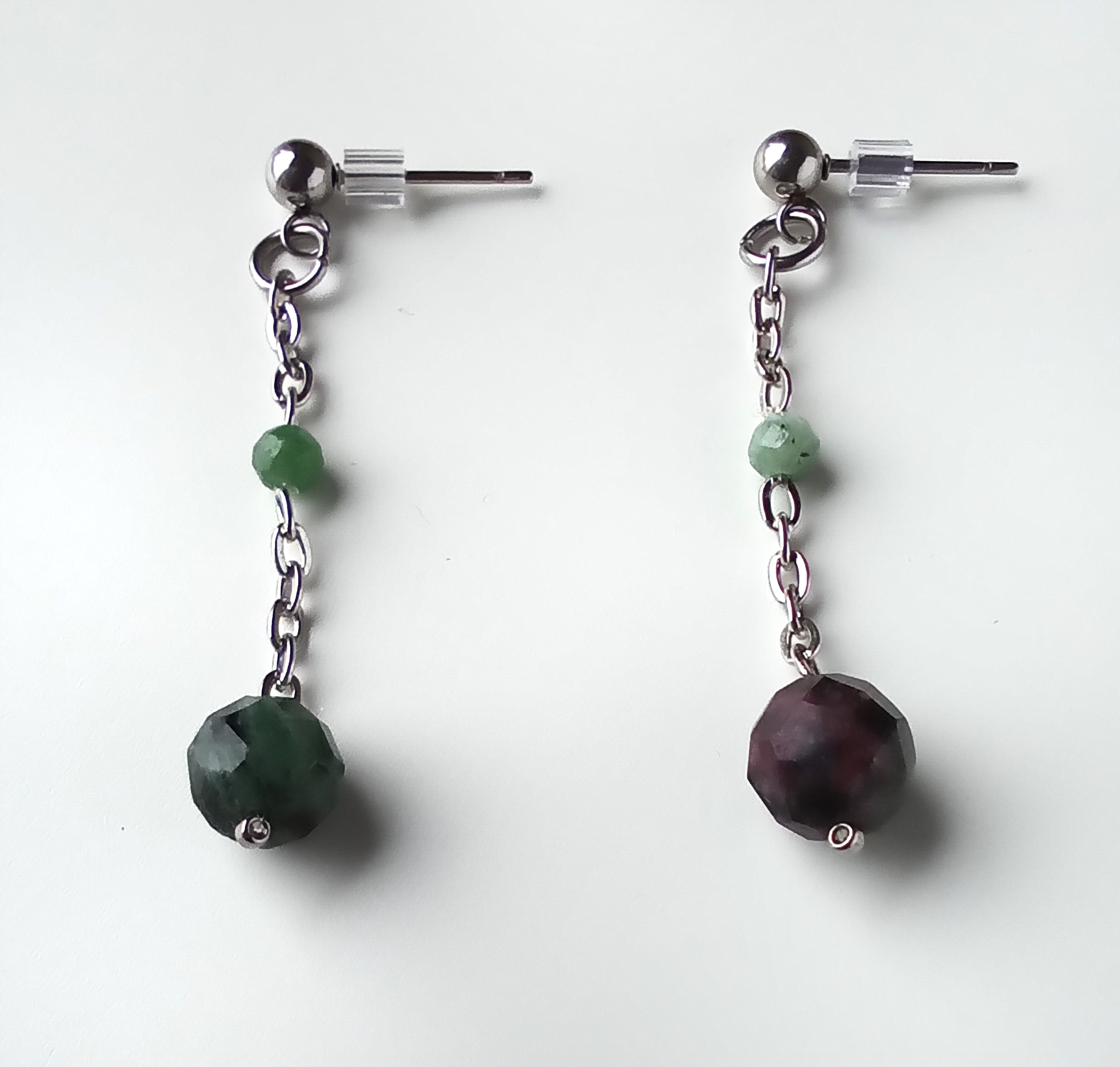 Kolczyki „Vicky” z kulkami zoisytów z rubinami delikatnie podkreślają urodę swojej właścicielki. Długość kolczyków idealnie wysmukla twarz i szyję – kolczyki o takim kształcie idealnie pasują kobietom o okrągłej buzi. W zestawie z bransoletką i naszyjnikiem sprawdzą się na spotkaniach biznesowych oraz w codziennych wyjściach.