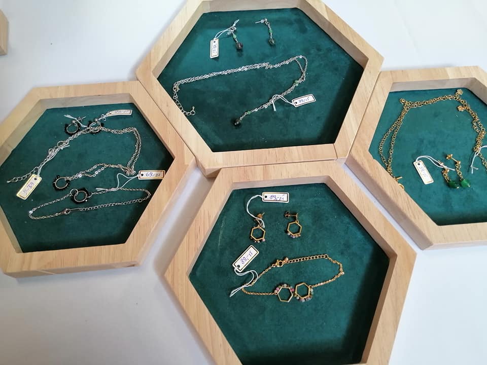 Trzyczęściowy komplet biżuterii „Amelia” składa się z naszyjnika, kolczyków i bransoletki na bazie geometrycznej w kolorze złotym, z wszytymi małymi turmalinami. Komplet jest delikatny i niezwykle efektowny. Idealny na spotkania biznesowe, jak i na wyjątkowe wyjścia w „małej czarnej”. Stal chirurgiczna, zastosowana w każdym elemencie kompletu, jest antyalergiczna, więc mogą używać jej uczuleniowcy 🙂
